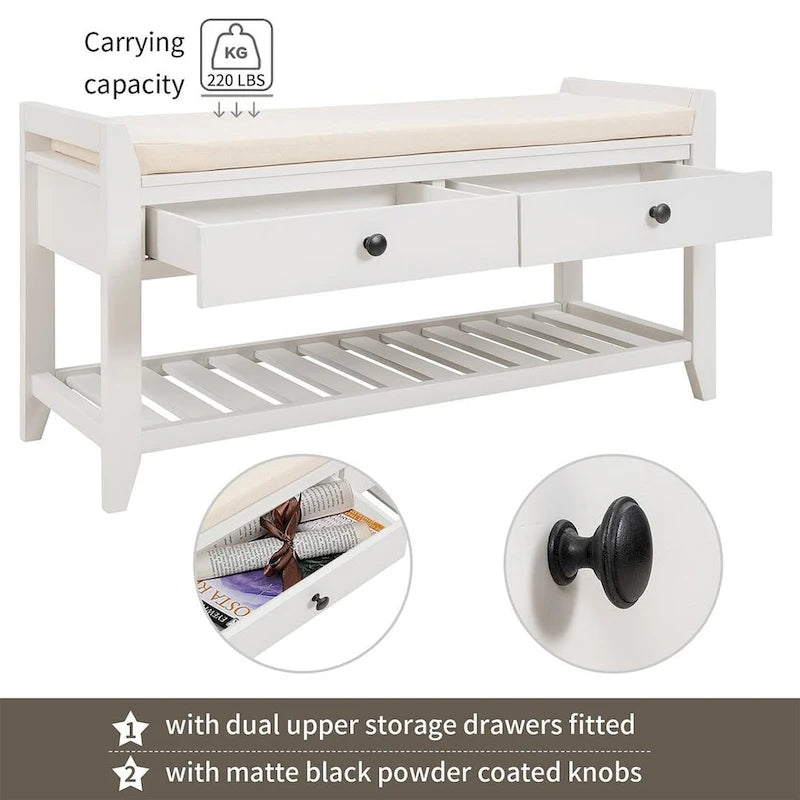 39 Farmhouse Versatile Entry Upholstered Storage Bench with 2 Drawers and 1 Shoe Rack
