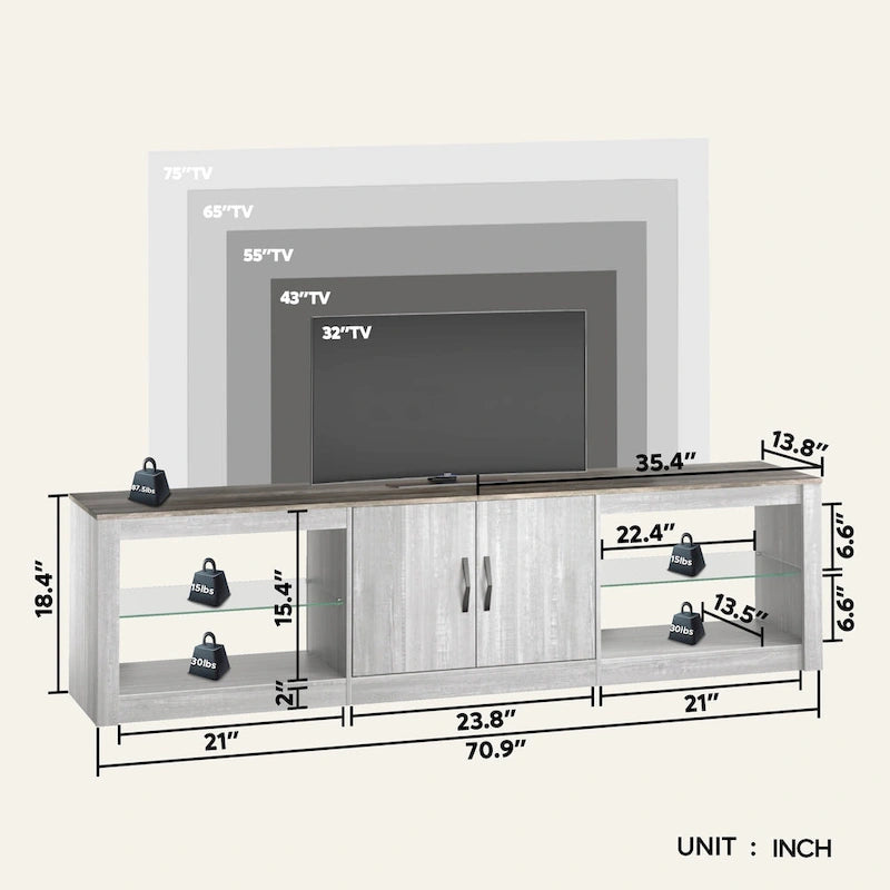 70 inch TV Stand 20 Color RGB Light Entertainment Center