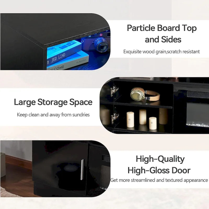 - Large Storage Space & Cable ManagementDouble-layer design offers more room for decorations displaying and it can hold up TVs up to 80. The entertainment center with fireplace has both open and closed cabinets proving ample and different storage space to accommodate media devices, gaming consoles, DVDs, and other accessories. There are cable holes produced to keep this area organized and clean.