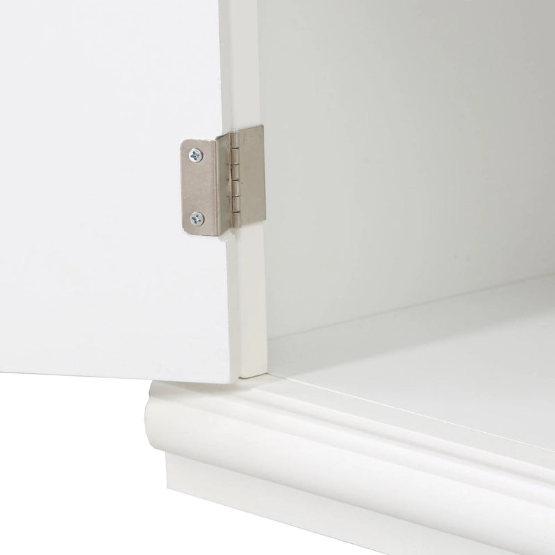 The neutral white finish effortlessly bridges modern and traditional aesthetics, making it a timeless addition to living rooms, study rooms, hallways, and offices. The practical storage design provides ample space for media, books, and collectibles, all in a stylish package. Plus, its retro design brings artistic flairwhether it stands alone as a hallway centerpiece or is grouped to form a stunning gallery wall.