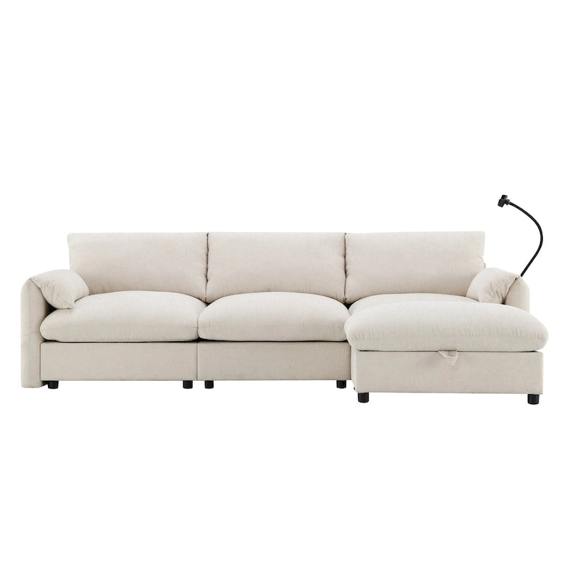 Transform your living space with our Multifunctional Sectional Sofa, designed to offer both comfort and convenience. This sofa features an oversized 32.5-inch ottoman that doubles as a footrest and provides hidden storage space, perfect for stowing away blankets, books, or other essentials. The adjustable phone holder allows you to position your phone at the ideal angle for hands-free use, while the built-in Type-C and USB charging ports ensure your devices are always powered up. The armrests are equipped with practical storage pockets, keeping essentials like remotes and magazines within easy reach. Soft, cushioned armrest pillows enhance comfort, and the extra-wide 29.5-inch seat offers ample space for relaxation. This sofa combines practicality with comfort, making it a great addition to any home.
