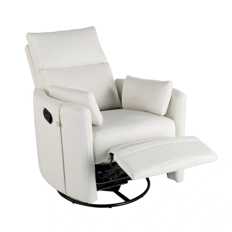 Beige Upholstered Swivel Rocker Recliner with Manual Recline, 360 Swivel, and Two Removable Cushions
