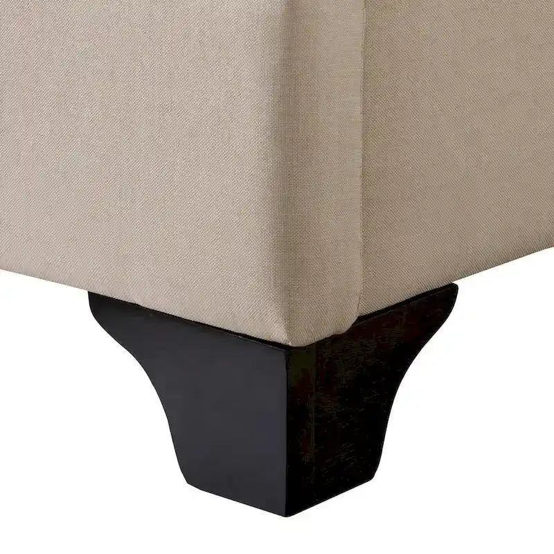 - Wide rectangle panel fabric headboard with clean lines and soft seams