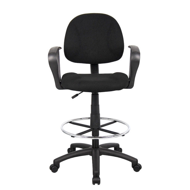 Boss Adjustable Black Loop Arm Drafting Stool with Wheel Casters