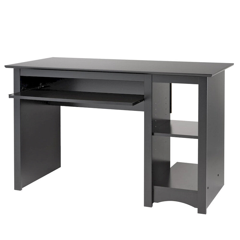Furnish your home office with this Broadway computer desk, which features clean lines for a contemporary look. The black finish complements cool and warm-toned rooms. Set your keyboard on the roll-out tray, and store your CPU in the lower compartment. An adjustable shelf holds books and supplies in arm's reach.