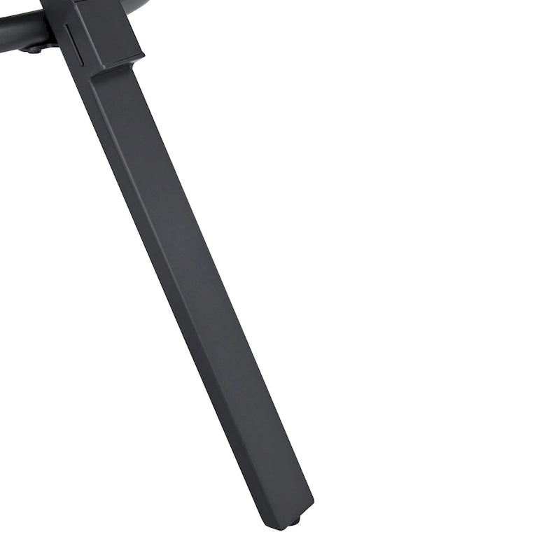 - Black-finished metal splayed trestle legs for industrial-inspired style
