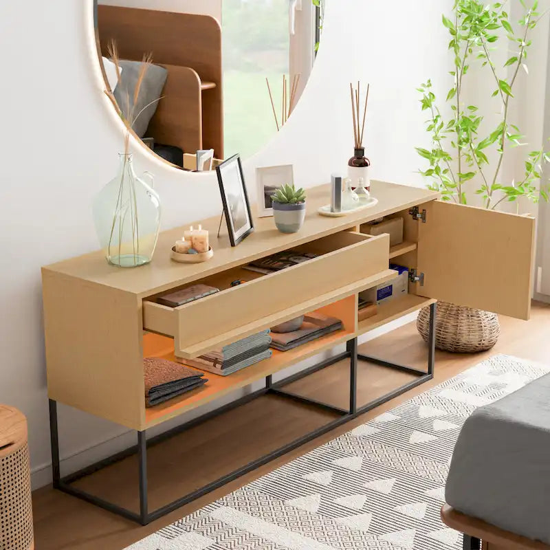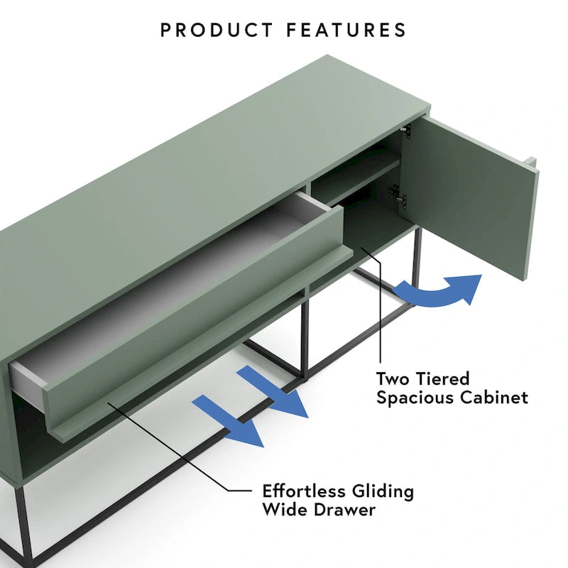 DH BASIC Modern 60-inch 16 Colors LED TV Stand with One Drawer and Metal Legs by Denhour