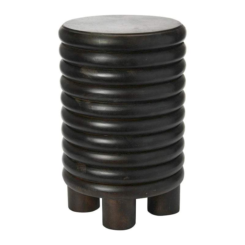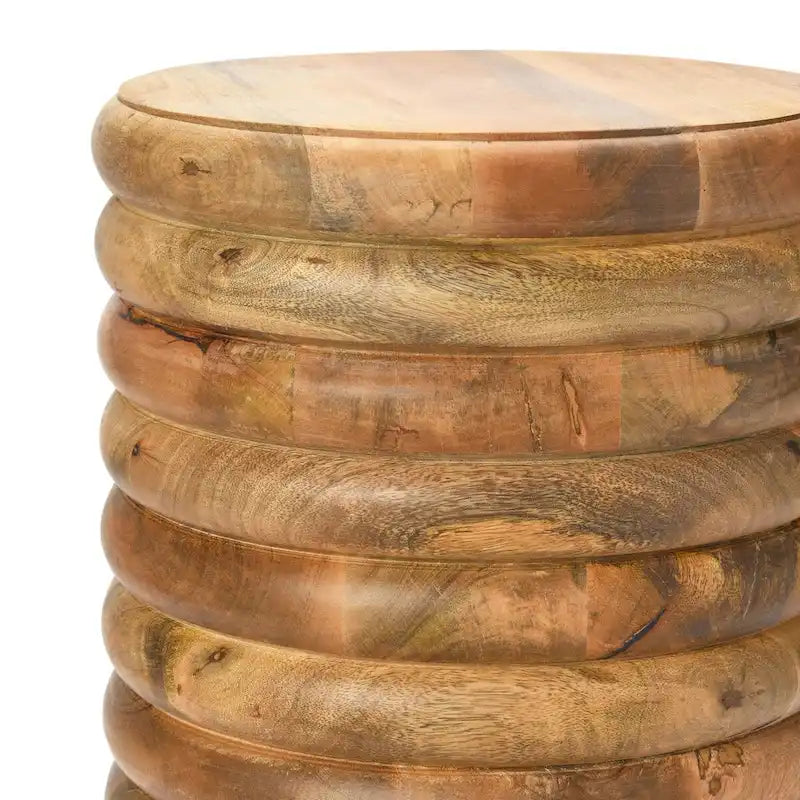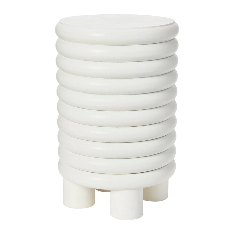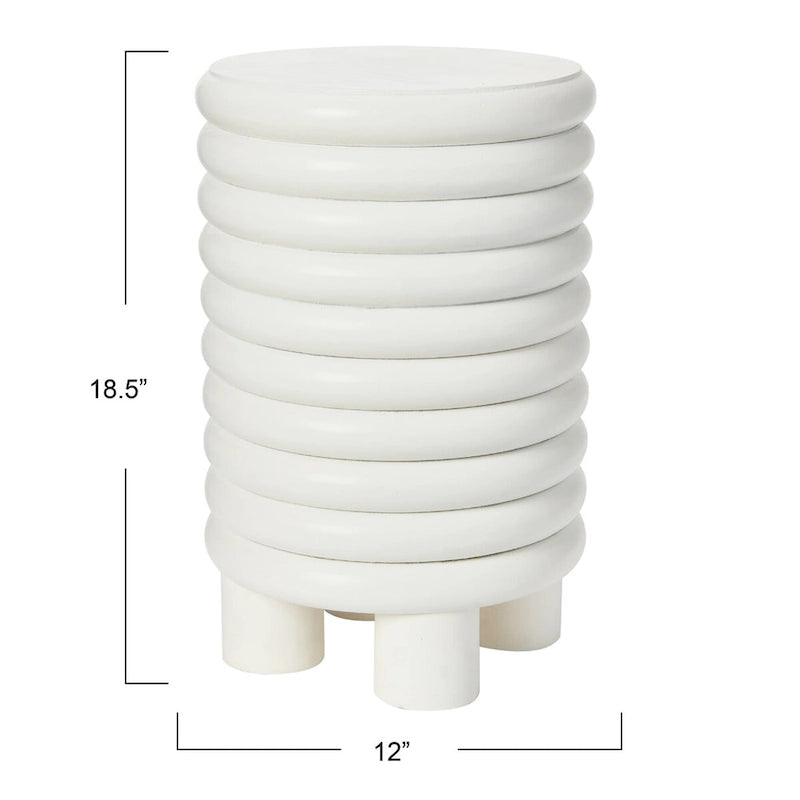 At 18.5 inches high, this classic piece is ergonomically ideal and doubles as a sturdy, comfortable stool, making it perfect for entertaining guests or simply relaxing with a drink. The flat top of this uniquely shaped piece makes it the perfect side table for drinks and food. Inspired by the playful and youthful expression of modern bubble furniture from the early 70s, this design exudes a vintage aesthetic that has become increasingly popular in contemporary style. Its stacked rounded form is also applicable to eclectic and coastal styles, making it a versatile piece that can complement a variety of interior design schemes. Crafted from lathe-turned solid wood in a beautiful matte white finish, this end table or stool is as durable as it is stylish. It also arrives fully assembled and ready to use, so you can enjoy its unique design right away. Whether you use it as a side table, nightstand, or extra seating, its iconic proportions and beautiful finish make it a timeless addition to your home.