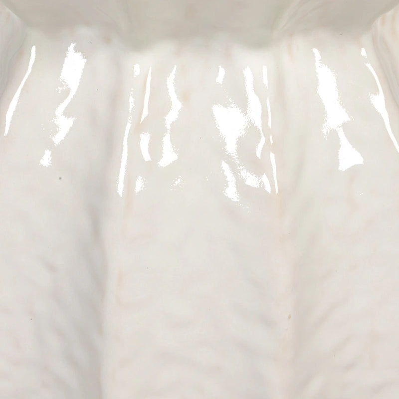 This white round sculpted stoneware stool is a simple and stylish addition to any home dcor. The stool is made of stoneware, which is a durable and natural material that has a smooth and glossy finish. The stool has a round shape and a sculpted design that adds dimension and interest to the piece. It has a white color that is neutral and versatile, matching well with any color scheme or style. The stool can support up to 150 pounds of weight and has a sturdy and smooth surface that is easy to clean. The stool measures 15.25 inches in length, 15.25 inches in width, and 19.75 inches in height. No assembly is required - just unpack and enjoy. Use this stool as an extra seat, a side table, or a decorative accent in the living room, bedroom, or home office. This white round sculpted stoneware stool will add a touch of simplicity and elegance to modern, minimalist, or Scandinavian-style home dcor.