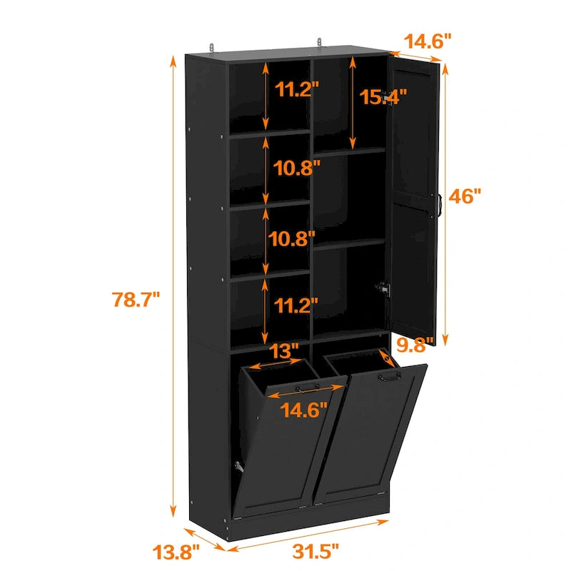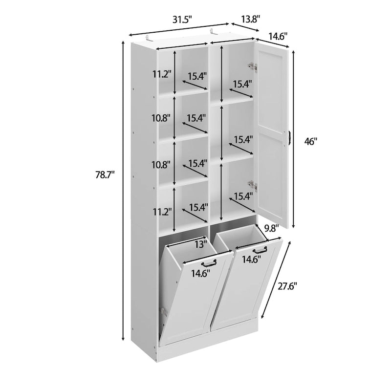 Organized Living Solution: This cabinet, with dimensions of 31.5W x 13.8D x 78.7H, is your ultimate storage solution. It's perfect for your laundry room, bedroom, study, or any space that needs both elegance and utility.