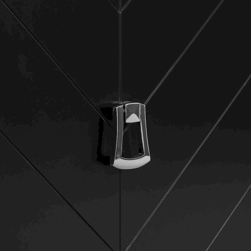 [Intricate Geometric Door Design]:The cabinet doors feature a sophisticated combination of line patterns, creating a striking geometric design that adds depth and visual interest to any room.