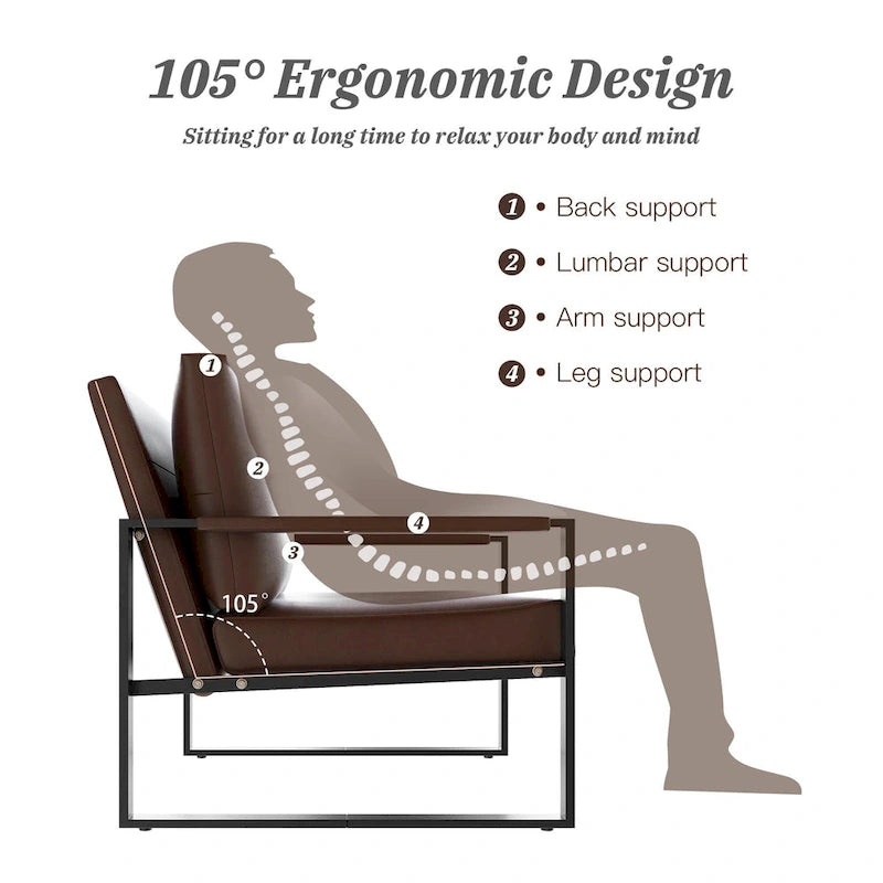 - Sink into the thickened padded cushions of this comfortable armchair while you watch TV, entertain or relax. Built with a high-density sponge and ergonomically designed backrest to deliver optimal comfort, and the thoughtful padded leather armrests ensure the safety of your arms while providing a stylish appearance.