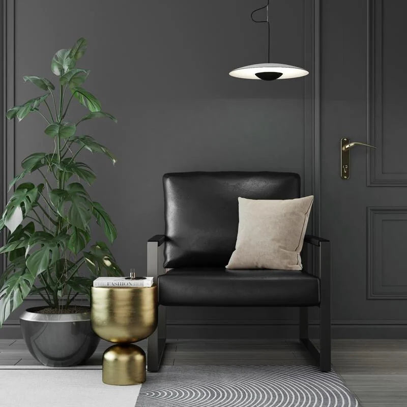 - Bring new levels of urban glam to your space with the black tone metal and sleek faux leather. Engineered with comfort, versatility, and style to be a lasting addition to your home, this classic accent chair will be a proud conversation piece in any room.