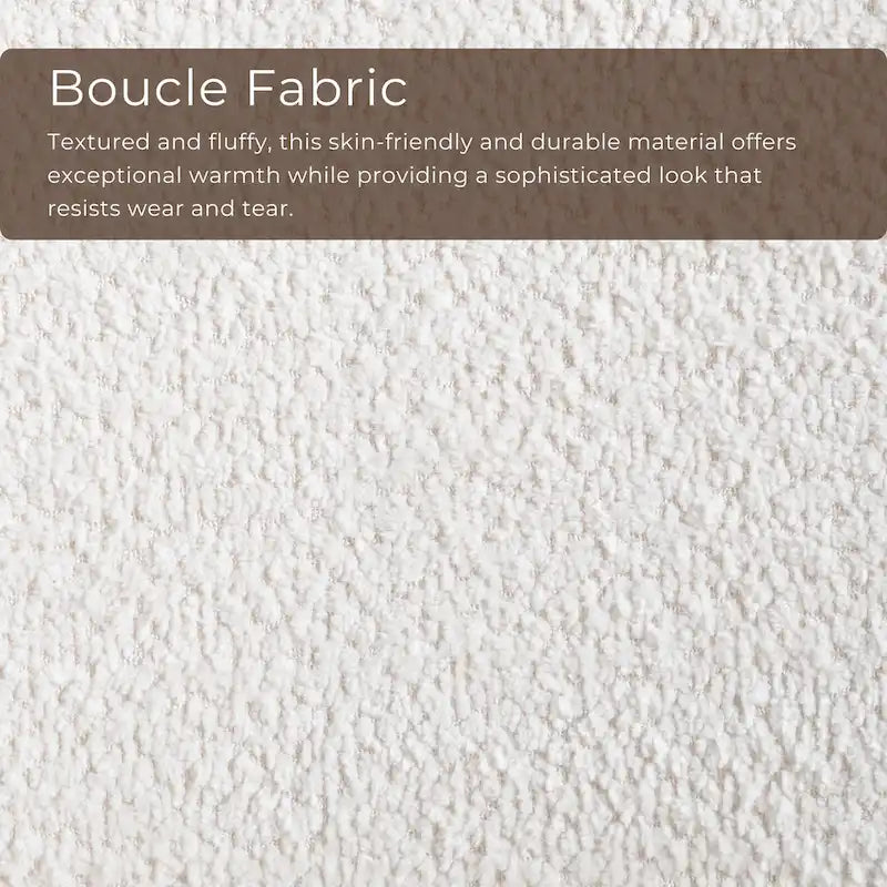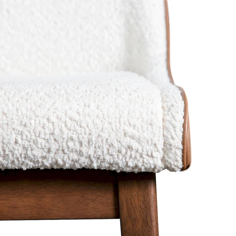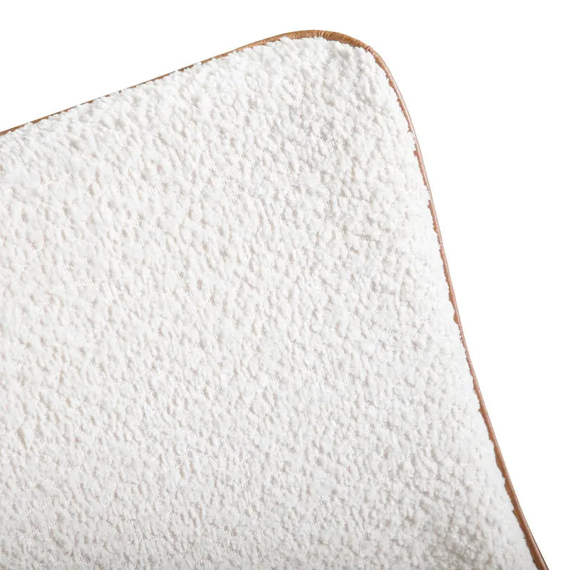 - UNIQUE: Textured boucle upholstery along inner side of chair back and seat cushion. Faux leather upholstery along outer side of chair back