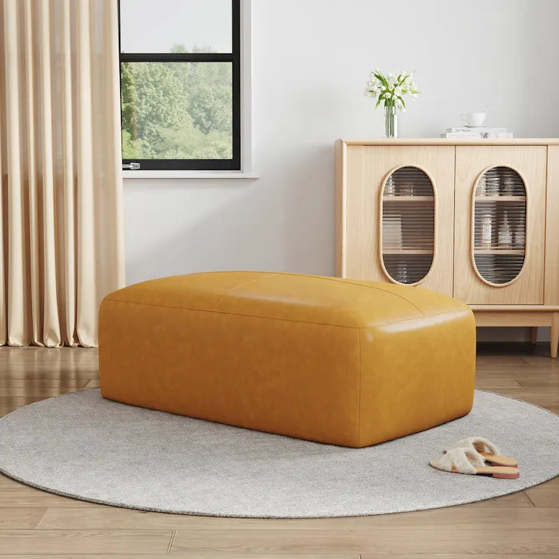 - Whether in your bedroom or on your living room porch, this leather ottoman seamlessly complements your home decor.