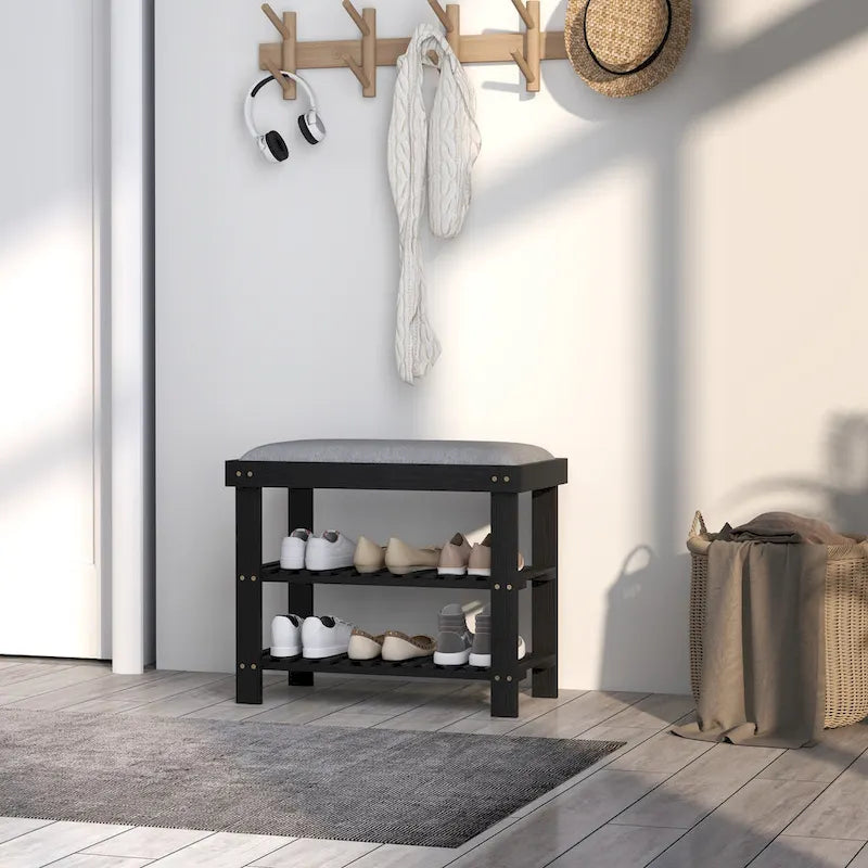 HOMCOM Bamboo Shoe Bench, 3-Tier Entryway Bench with Storage and Cushion, Shoe Organizer for Entryway, Hallway