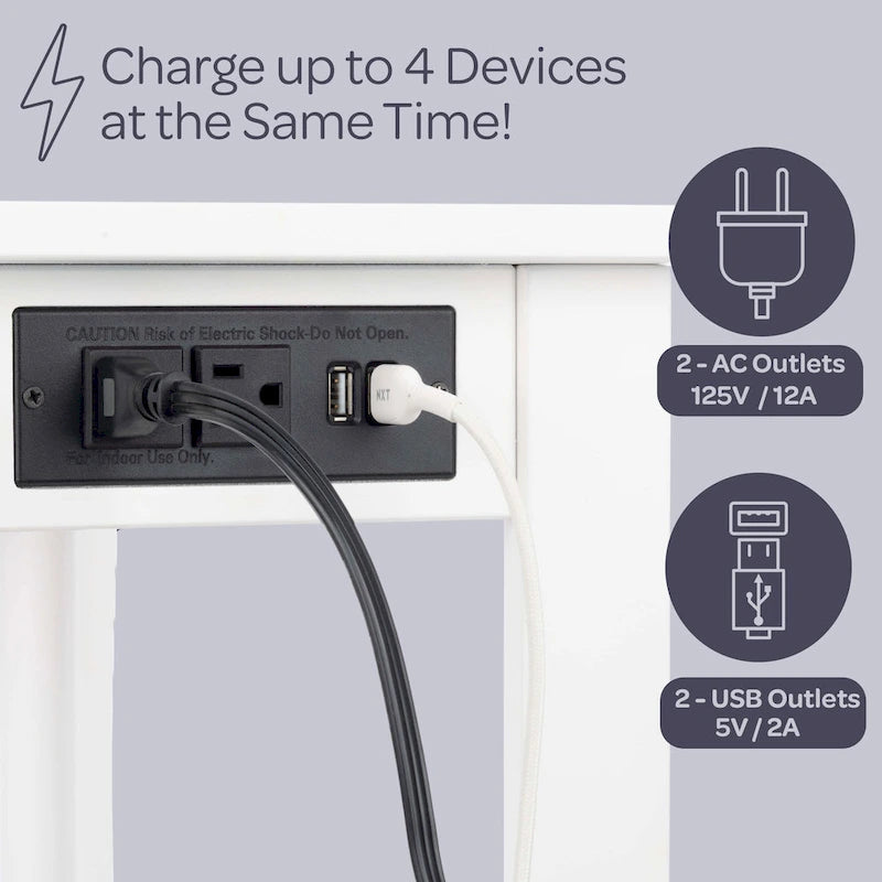 - MATERIALS - Manufactured Wood. DIMENSIONS - (L) 23.62 x (W) 11.02 x (H) 22.05; Cord: (L) 57; Tabletop and Shelf Weight Capacity: 50lbs Each; USB Ports: Type-A, 5V/2A; Power Cord and Outlets: Grounded.