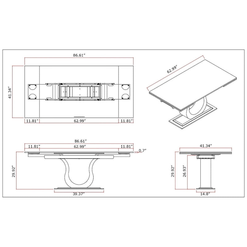- Two 12 pull-out extensions open top to 41x 86