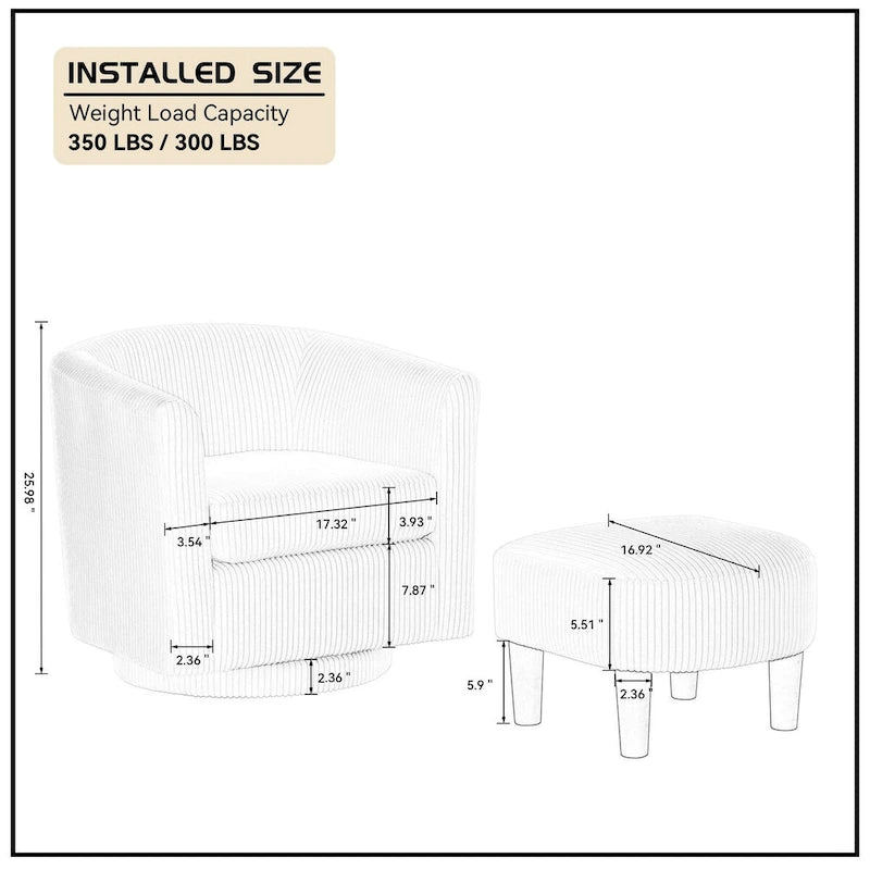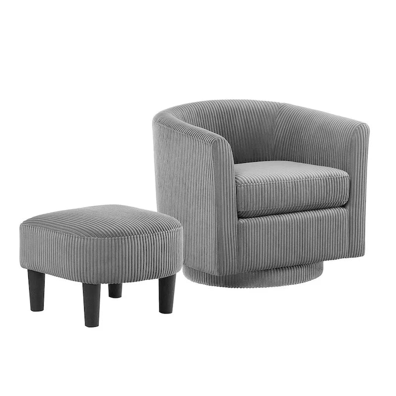 Swivel Accent Chair 360 Comfy Recliner Corduroy Arm Chair Single Sofa with Ottoman for Living Room Bedroom