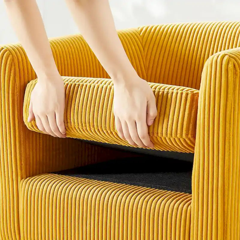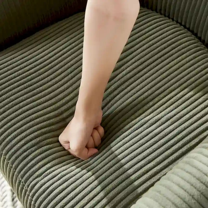 - Material: High-quality corduroy fabric, rubber wood plywood frame, plastic legs