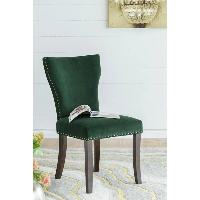 Velvet Armless Nail Head Wooden Dining Chairs 37 Green and Brown 2Ct